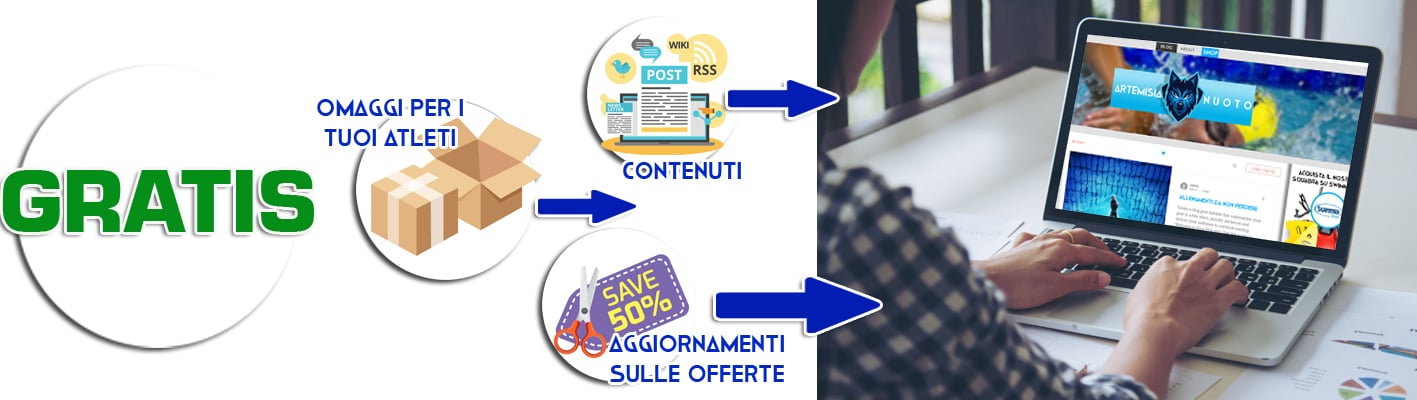 In più ti aiuteremo, se lo desideri, creando una pagina apposita (landing page) per il tuo sito che spieghi bene agli atleti il funzionamento della sponsorizzazione, ma anche con articoli gratuiti per il tuo blog e banner con le offerte mensili più vantaggiose, così che i tuoi atleti possano trarre vantaggio da ogni nostra promozione.